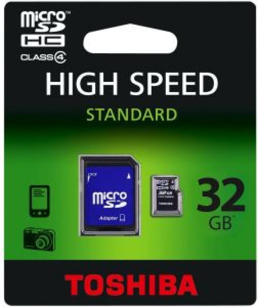 TOSHIBA MicroSD 32GB Class4 Memory Card with Adapter ذاكرة توشيبا 32جيجا لتحميل جميع البيانات مناسبة للكاميرات والجوال